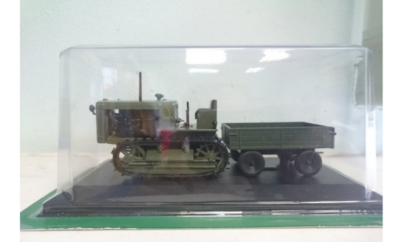 Довольно аккуратная модель получилась. Размером она чуть больше "Фордзона - Путиловца". Из металла в модели только шпильки, на которых держатся звездочки и ленивцы, и кабина. Остальное - пластик. На моём экземпляре гусли аккуратные, крутятся хорошо. Но делать это часто не рекомендую - быстро сползают. Из брака - смотрящая куда-то вверх левая передняя фара и сломанная выхлопная труба. Естественно, сразу после покупки починил.
