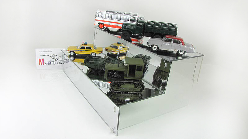 Удобная подставка под модели "Лесенка" (или "Горка"), специально разработана для аккуратного с размещения моделей масштаба 1:43, 1:72 и др. на полках шкафов. Используя эту подставку, вы сможете приподнять задние ряды коллекции на глубокой полке шкафа. Комбинация из нескольких подставок может быть размещена в шкафу практически любой ширины. Прозрачные подставки удобно использовать и на стеклянных полках, т.к. они полностью пропускают свет и не затеняют нижние поверхности.