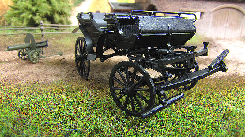 Рессорная подвеска воспроизведена довольно точно. Нажатие пальцем на кузов сверху вызывает приседание коляски на рессорах. (Однако, делать это часто не рекомендуется, так как нанесенные на рессоры грунт и краска не любят физических трений и колебаний)